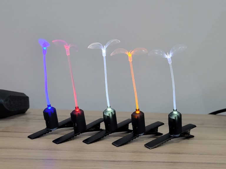 This glowing LED sprout hairpin was designed with mass production in mind. It balances a simple design with low manufacturing cost while maintaining an attractive look. The project highlights our focus on efficient and practical product design.